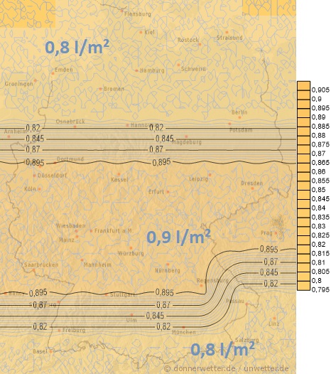 Am Mittwoch fällt erneut teils kräftiger Regen, auf den Bergen und in der Nacht auf Donnerstag an der Grenze zu Dänemark auch Schnee. Die Mengen erreichen zwischen 5 und 20 Liter pro Quadratmeter, regional auch mehr.