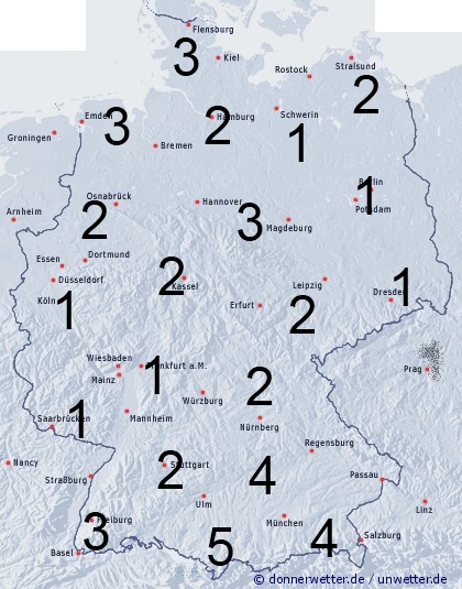 In Deutschland gibt es leichte Benetzung durch nächtlichen Strahlungstau, aber auch durch örtliche Schauer und Gewitter. Die Benetzungsdauer liegt dabei meistens zwischen 1 und 5 Stunden.