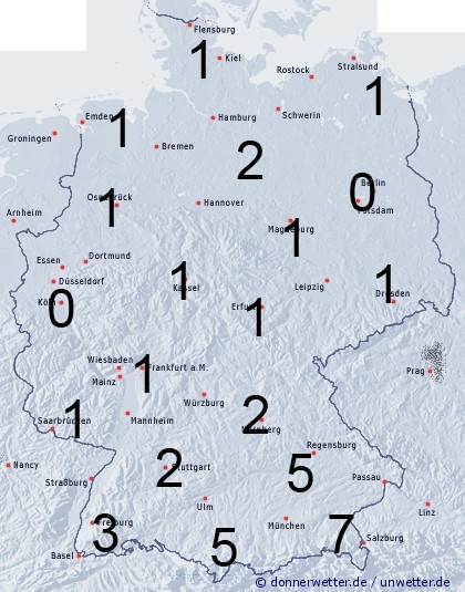 Im Süden Benetzung durch örtliche Schauer