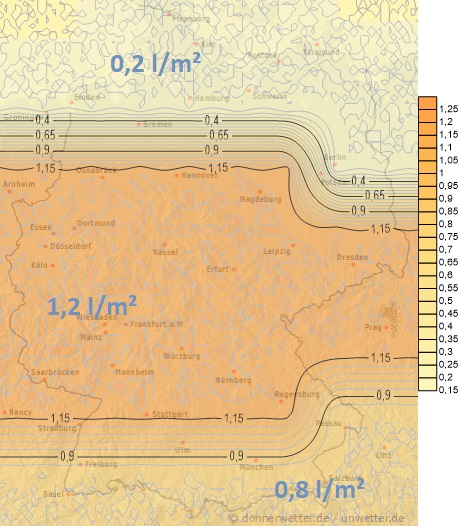 Von Mittwoch auf Donnerstag überquert uns teils schauerartiger Regen von West nach Ost.