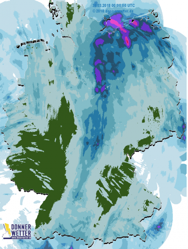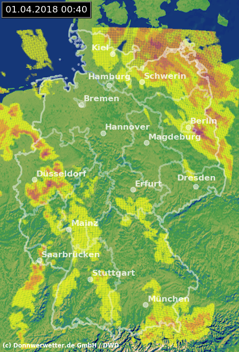 Radarbild von Ostersonntag, 01.04.2018 um 00.40 Uhr