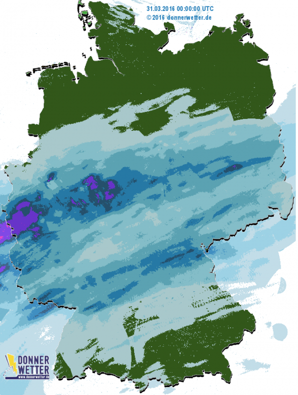 Am Donnerstag fiel besonders im Westlichen Bereich, an der Grenze zur Niederlande der Regen. Im Östlichen Teil war ebenfalls Regnerisches Wetter dennoch etwas leichter als im Westen. Der Norden Deutschlands blieb gestern vom Regen verschohnt.