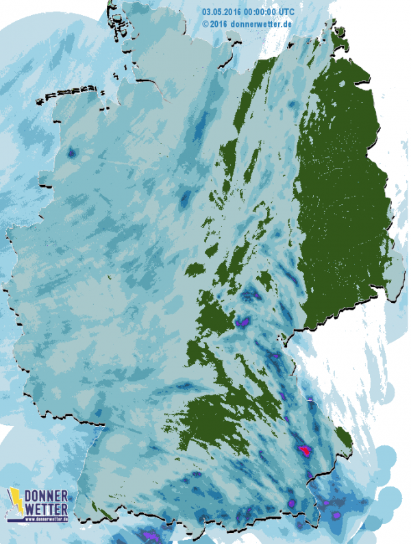 Am Dienstag zogen Ausläufer des Tiefs Waltraud über weite Teile Deutschlands hinweg. Diese brachten am Vormittag vor allem in der Westhälfte und im Süden des Landes Niederschläge, die am Alpenrand zum Teil auch ergiebiger ausfielen. Im Tagesverlauf zogen die Niederschlagsgebiete weiter gen Osten, sodass es im Westen zunehmend aufklarte.
