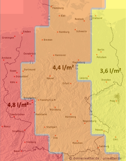 Von morgens früh bis abends spät lachte die Sonne von einem strahlend blauen Himmel, der von fast keiner Wolke getrübt wurde. Dementsprechend hoch war auch die Verdunstung im gesamten Land. Im äußersten Westen wurden dabei Werte von knapp 5 Liter pro Quadratmeter erreicht.