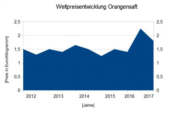 Eine deutlich und drastische Preissteigerung liegt zur Zeit bei den Orangen und gleichzeitig dem Orangensaft vor. In den vorherigen Jahren hat sich der Preis größtenteils gehalten welcher nun 2016 explodierte. Meistens kommen die Vitaminbomben aus Spanien, Italien, der Türkei oder Griechenland auf den deutschen Markt.