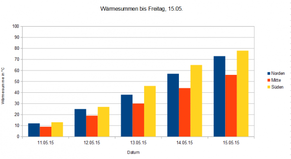 Bis zum Sonntag kann im Süden eine Wärmesumme von 100 °C erreicht werden.