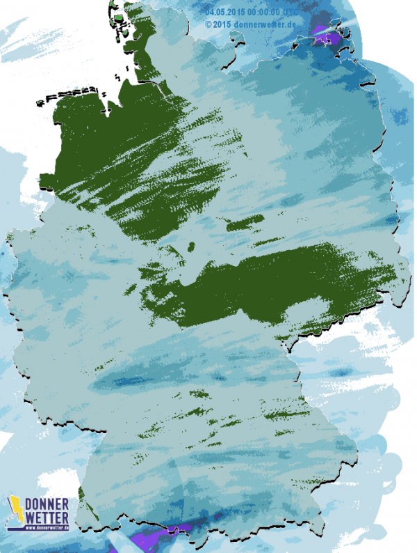 Nennenswerte Niederschläge fielen zumeist nur an der Ostseeküste / Rügen sowie am Bodensee.