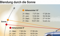 Zu welchen Jahres- und Tageszeiten die Blendgefahr besonders hoch ist und wie Ihr eine kurzzeitige 'Sonnenerblindung' vermeiden könnt!