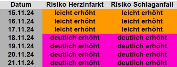 Mit dem Einfluss kühlerer Luft erwarten uns über weite Strecken der kommenden Woche deutlich erhöhte Schlaganfall- und Herzinfarktrisiken.
