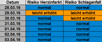 Über den Monatswechsel sorgt das Wetter nur vereinzelt für leicht erhöhte Schlaganfal- und Herzinfarktrisiken.