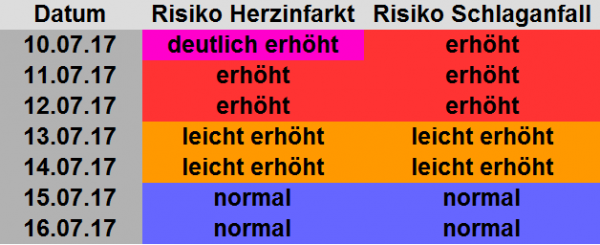 Die Schlaganfall- und Herzinfarktrisiken bis zum 16.07.2017