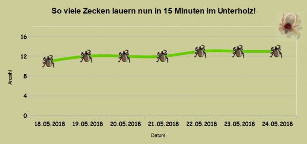 Milde Temperaturen treffen am Pfingstwochenende sowie in der neuen Woche auf regionale Schauer und Gewitter. Vor allem im Süden besteht ein erhöhtes Schauer- und Gewitterrisiko; dies hat zur Folge, dass der Zeckenbesatz in den Risikogebieten nochmals ansteigt.