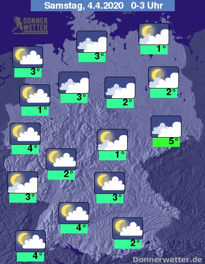 In der Nacht auf Samstag zeigt sich der Himmel über der Westhälfte zunächst locker bewölkt; im weiteren Verlauf klart es hier aber verbreitet auf, so dass die Sterne dann auch häufig von einem wolkenlosen Himmel funkeln. In der Osthälfte des Landes überwiegt in den kommenden Stunden wechselnde oder starke Bewölkung, es bleibt aber trocken.