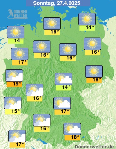 Am Sonntag ist es über dem Südwesten Deutschlands und an den Alpen teilweise stärker und sonst noch aufgelockert bewölkt. Im großen Rest der Republik ist es überwiegend sonnig. Es bleibt bundesweit trocken bei Höchstwerten von 14 Grad an den Küsten und bis 19 Grad in der Kölner Bucht.