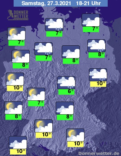 Heute Abend klingen letzte Niederschläge nach und nach ab und die Bewölkung kann vielerorts auflockern. Vor allem im Osten, Südosten und vom Niederrhein bis zur Ems bleibt es allerdings zumeist bei dichten Wolken. Die Temperatur liegt bei 6 Grad in Erfurt und bis 10 Grad in Freiburg.