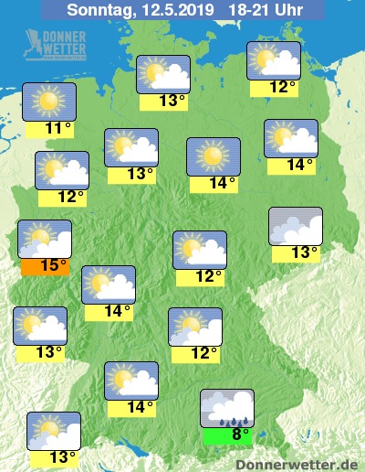 Heute Abend fällt lediglich am Alpenrand unter dichten Wolken noch zeitweise Regen, über dem übrigen Süden und auch dem Osten ist es zwar noch teils stark, häufig aber auch aufgelockert bewölkt und zudem trocken. Weiter nach Nordwesten hin ist es verbreitet heiter bis sonnig, gebietsweise ziehen mehr Wolken durch, dabei bleibt es trocken. Die Temperatur liegt bei 8 Grad in Rosenheim und bis 15 Grad in Köln.