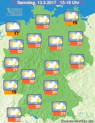Die schül-warmen Luftmassen halten sich auch am Nachmittag und Abend noch über Deutschland und bringen vielerorts Unwetter mit sich. Der Himmel ist leicht bewölkt und an der Nordsee sind Schauer möglich.