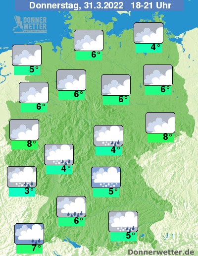 Heute Abend ist es weiterhin größtenteils bedeckt, lediglich an der Ostsee lockert es hier und da auf. Über der Nordhälfte bleibt es dabei trocken, weiter nach Süden hin fällt jedoch verbreitet Regen, Schneeregen oder Schnee. Die Temperatur liegt bei 3 Grad am Pfälzer Wald und bis 8 Grad im Rheinland.