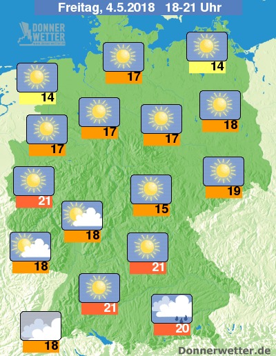 An dieser Zweiteilung ändert sich auch im Lauf des Nachmittags und bis zum Abend kaum etwas. In Alpennähe kann es am Abend hingegen sogar zeitweise leicht regnen.
