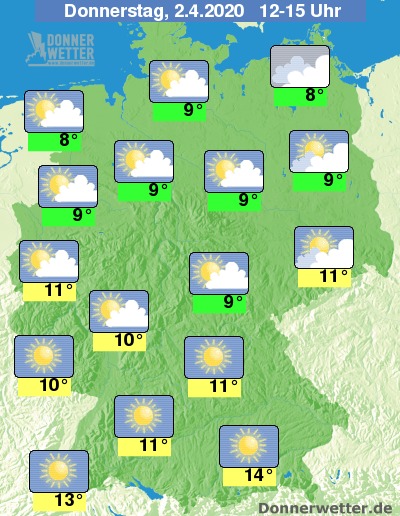 Bis zum Abend trübt sich der Himmel über dem Norddeutschen Tiefland weiter ein, im weiteren Verlauf beginnt es an den Küsten von Nord- und Ostsee, sowie in Schleswig-Holstein auch zu tröpfeln. In der Südhälfte dominiert weiterhin recht sonniges Wetter.