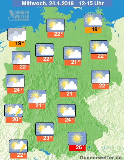 Die Temperaturen bewegen sich allgemein zwischen 20 und 24 Grad, etwas kühler bleibt es an den Küsten, frühsommerlich wird es rund um München mit bis zu 26 Grad.