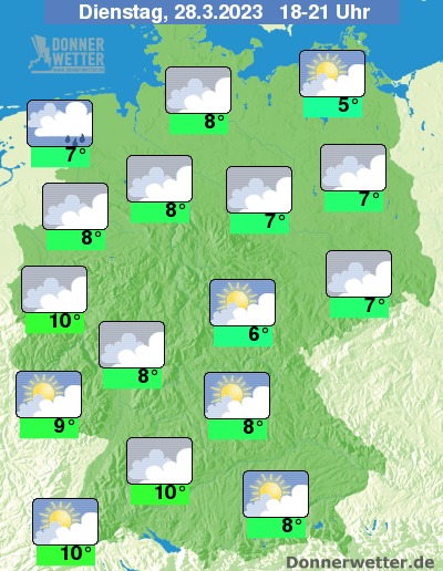 Heute Abend zieht es sich über der Westhälfte Deutschlands weitgehend zu, Richtung niederländische Grenze sind auch einige Tropfen möglich. Im übrigen Land ist es aufgelockert bis stark bewölkt und noch trocken. Die Temperatur liegt bei 5 Grad in Stralsund und 10 Grad in Freiburg.