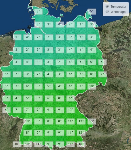 Tiefstwerte im Norden nur knapp über dem Gefrierpunkt