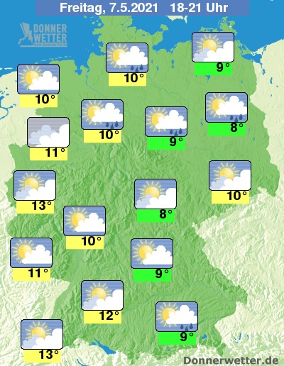 Heute Abend klingen letzte Schauer auch im Norden, Osten und am Alpenrand immer weiter ab, sonst ist es schon verbreitet heiter und oft sogar sonnig, dabei bleibt es trocken. Die Temperatur liegt bei 8 Grad in Jena und bis 13 Grad in Köln.