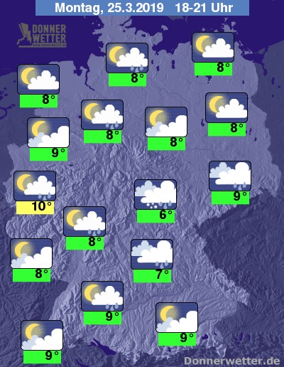 In den Abendstunden zeigt sich der Himmel über weiten Landesteilen zunächst wechselnd oder stark bewölkt und regional muss mit Schauern gerechnet werden. In den höheren Lagen der Mittelgebirge können auch Schneeregen- oder Schneeschauer fallen.