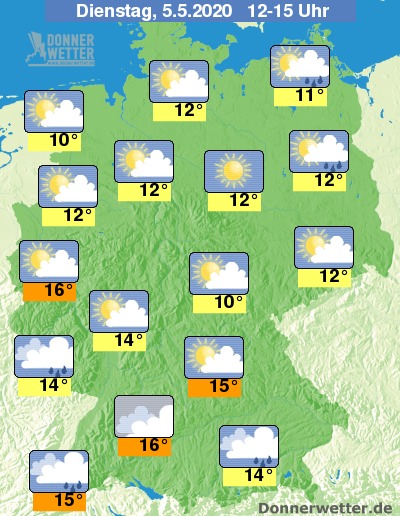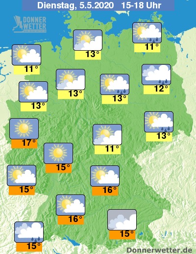 Die Temperaturen bewegen sich im Norden und Osten zwischen kühlen 10 und 13 Grad, im Süden und Westen zwischen 14 und 17 Grad.