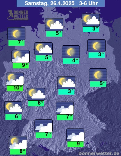 In der Nacht zum Samstag klingt der Regen auch über Bayern nach und nach ab. Im übrigen Süden bleibt es weitgehend bedeckt und dazu trocken. Über der Breiten Landesmitte bis in den Norden zeigt sich der Himmel verbreitet sternenklar oder nur locker bewölkt, dazu bleibt es trocken. Die Temperatur sinkt auf 10 Grad in Köln und bis 3 Grad in Jena.