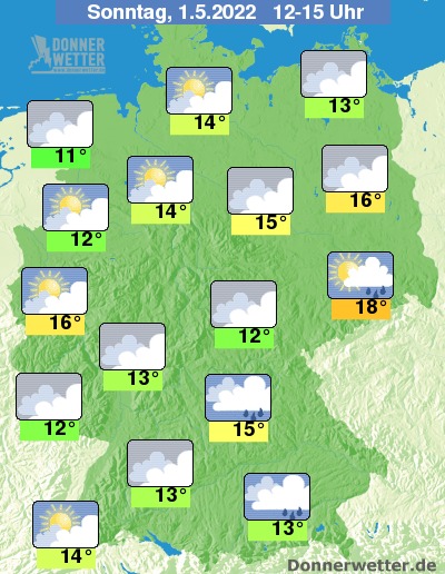 Heute Nachmittag ist es ziehen häufig dichte Wolken durch, vor allem im Norden und Westen zeigen sich aber auch Auflockerungen. Im Süden und Osten bilden sich einzelne Schauer, während es im übrigen Bundesgebiet trocken bleibt. Die Temperatur liegt bei 11 Grad an der Nordsee und bis 18 Grad in der Lausitz.