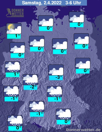 In der kommenden Nacht fällt über dem Süden, anfangs auch im Westen Deutschlands weiterhin zeitweise Schnee und zum Teil auch Schneeregen. Im übrigen Land ist es zwar ebenfalls bedeckt, jedoch trocken. Die Temperatur sinkt auf 1 Grad in Wilhelmshaven und bis.-3 Grad in Jena.
