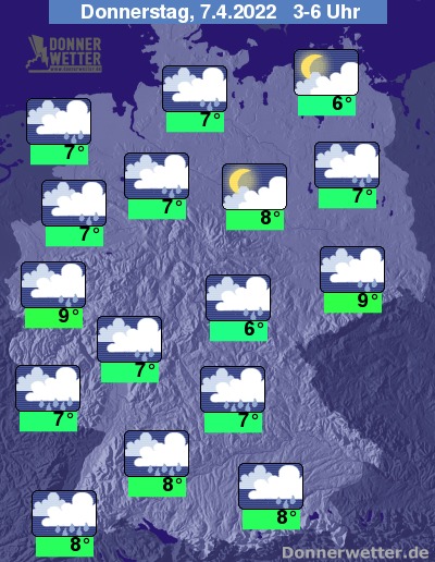 Am Donnerstag ist es zumeist bedeckt, im Tagesverlauf sind dann im Norden aber auch Auflockerungen möglich. Es fällt verbreitet und wiederholt Regen bei Werten von 7 Grad an der See und bis 15 Grad im Raum München. Zudem weht ein verbreitet stürmischer Wind. An der Nordsee herrscht vielerorts Sturm.