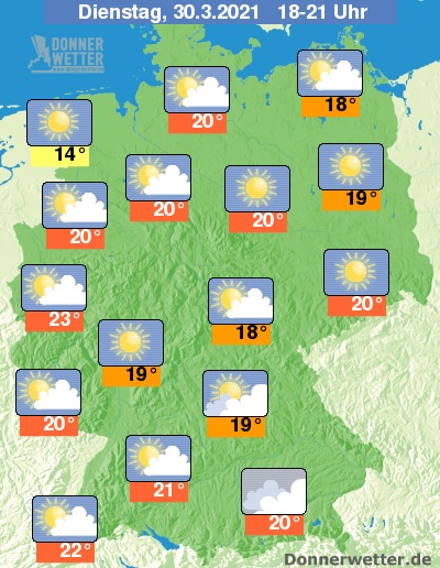 Heute Abend bleibt es weiterhin oft wolkenlos oder nur locker bewölkt, dabei bleibt es trocken. Die Temperatur liegt noch bei 14 Grad im nördlichen Emsland und bis 23 Grad im Rheinland.