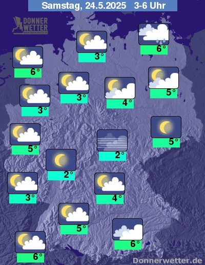 Die Temperaturen gehen in den frühen Morgenstunden zurück auf Werte um 6 bis 2 Grad.
