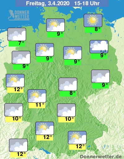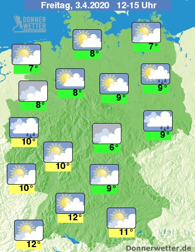 Die Temperaturen bewegen sich zwischen 6 und 12 Grad, wobei man die höheren Werte im Südwesten vorfindet.