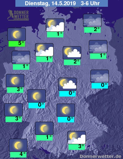 In der Nacht zeigt sich der Himmel über der Nord- und Osthälfte locker oder aufgelockert bewölkt, entlang von Weser, Elbe und Oder kann sich in den kommenden Stunden stellenweise Nebel ausbilden. Im Westen und Südwesten ist es überwiegend sternenklar. Mit Schauern muss in der Nacht nicht gerechnet werden.