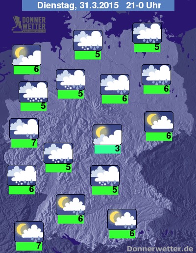 Heute Abend zieht weiterhin meist starke Bewölkung durch und es können sich immer wieder teils kräftige Schauer bilden, gebietsweise sind auch Graupel oder Schnee möglich. Auflockerungen sind am wahrscheinlichsten in Thüringen, Sachsen-Anhalt und in Sachsen, hier bleibt es häufig auch trocken. Die Abendtemperatur liegt bei 7 Grad in Freiburg und um 3 Grad im Coburger Land. Es weht verbreitet noch starker bis stürmischer Wind mit möglichen Sturmböen, teils auch schweren Sturmböen. An der See, auf den Bergen, sowie Im Norden und Nordosten herrscht noch oft Sturm mit teils orkanartigen Böen.