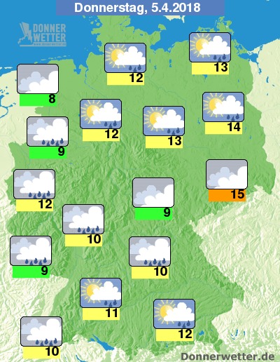 Am Donnerstag zieht teils starke, zum Teil aber auch aufgelockerte Bewölkung durch, dabei bilden sich zeitweise Schauer. Mit Temperaturen zwischen 8 bis 15 Grad ist es deutlich kühler als zuvor.