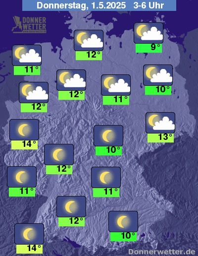 In der Nacht zum Donnerstag ist der Himmel über der Nordhälfte gering bewölkt oder es bildet sich örtlich Nebel. In den übrigen Landesteilen funkeln die Sterne in der Mainacht von einem meist wolkenlosen Himmel.
