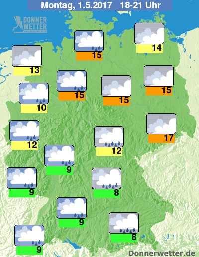 Heute Abend zieht es sich auch im Osten und Nordosten zu, Regen ist hier jedoch kaum zu erwarten. Im übrigen Bundesgebiet fällt bei dichter Bewölkung hingegen immer wieder Regen. Die Abendwerte liegen bei sehr kühlen 8 oder 9 Grad im Süden, sonst zwischen 10 Grad am Niederrhein und noch bis 17 Grad in Dresden.