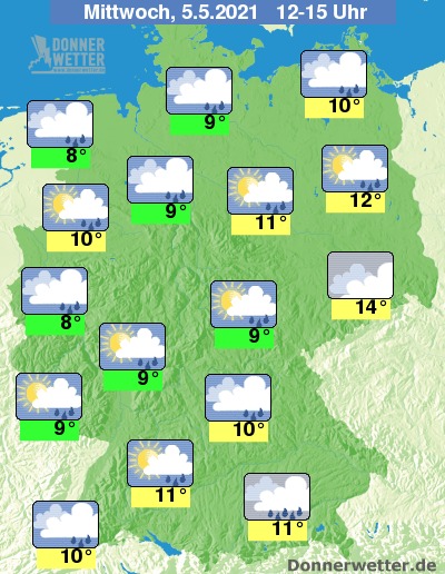 Heute Abend bilden sich über der Südhälfte Deutschlands noch gebietsweise Schauer, die im weiteren Abendverlauf aber immer weiter abklingen, dazwischen lockert die Bewölkung auf. Weiter nach Norden hin ist es schon meist locker bis aufgelockert bewölkt und dazu trocken. Die Temperatur liegt bei 8 Grad in Berchtesgaden und bis 14 Grad in der Lausitz.