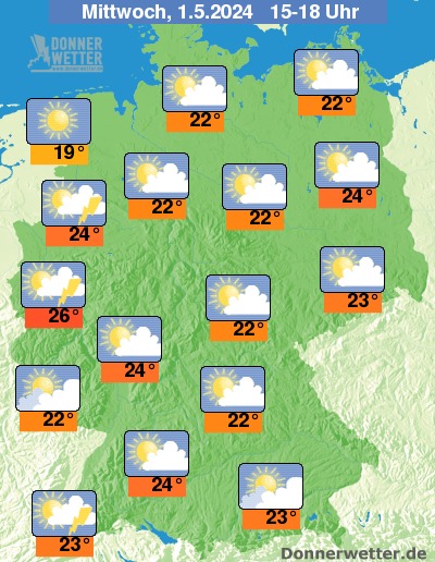 Überwiegend freundlich-warmer Mainachmittag, lokale Gewitter aber nicht ausgeschlossen.