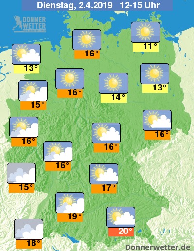 Die Temperaturen liegen zwischen 11 Grad an der Ostsee und bis 20 Grad im südlichen Bayern.