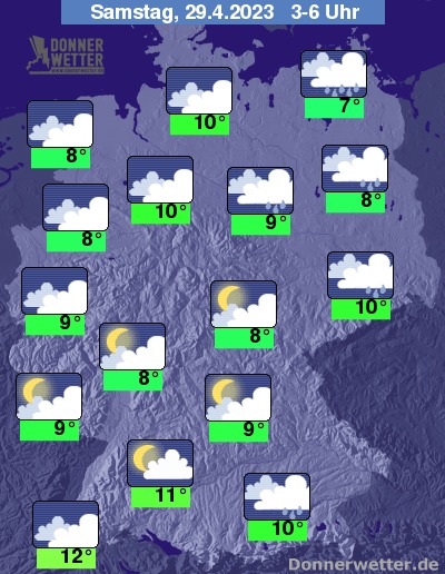 Am Samstag ist es zunächst verbreitet stark oder dicht bewölkt, im Süden und Osten bilden sich dabei noch gebietsweise Schauer. Im übrigen Land bleibt es jedoch schon trocken. Im Norden heitert der Himmel vor allem am Nachmittag verbreitet auf. Die Temperatur steigt auf 10 Grad im Eichsfeld und bis 18 Grad im Oberrheingraben.
