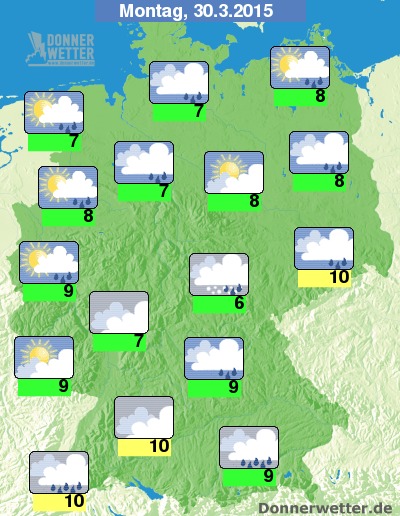 Heute bleibt es überwiegend stark bewölkt, hier und da kann die Bewölkung aber auch mal etwas auflockern. Es bilden sich immer wieder, teils kräftige Schauer, zum Teil auch mit Graupel oder Schnee. Die Temperatur steigt auf 6 Grad im Grabfeld und bis 10 Grad im Oberrheingraben. Dazu weht verbreitet starker bis stürmischer Wind, dabei können besonders nach Norden hin Sturmböen auftreten. Auf den Hochlagen der Mittelgebirge und an der See weht oft stürmischer Wind, dazu sind schwere Sturmböen und auch orkanartige Böen möglich.