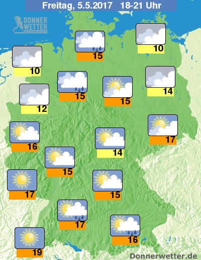 Auch die Temperaturen orientieren sich an der Sonnenscheindauer und steigen auf Höchstwerte zwischen 10 Grad an den Küsten und 19 Grad am Oberrhein.