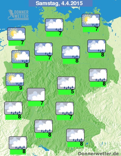 Das kommende Osterwochenende zeigt sich besonders am Samstag meist alles andere als freundlich, denn zu den unterkühlten Höchstwerten zwischen 5 und 9 Grad gesellen sich noch jede Menge Regenwolken und teils auch starker Wind. Erst im Laufe des Tages dürfte es zumindest im Nordwesten zunehmend freundlicher werden und auch trocken bleiben.
