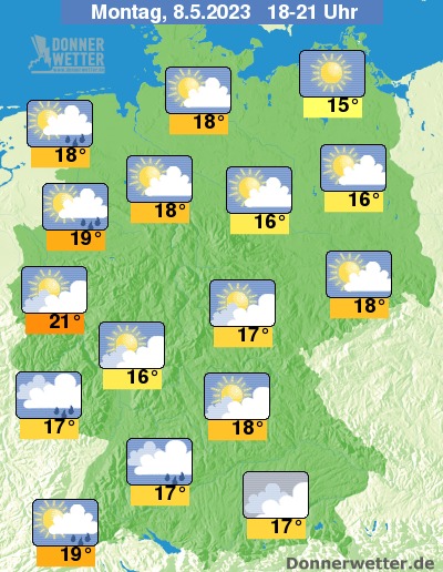 Heute Abend bilden sich im Süden, Südwesten und Westen noch einzelne Schauer, sie klingen jedoch nach und nach ab, jedoch bleibt es hier meist stark bewölkt. Weiter nach Nordosten hin ist es verbreitet heiter bis sonnig und dazu trocken. Die Temperatur liegt bei 15 Grad an der Müritz und bis zu 21 Grad in der Kölner Bucht.